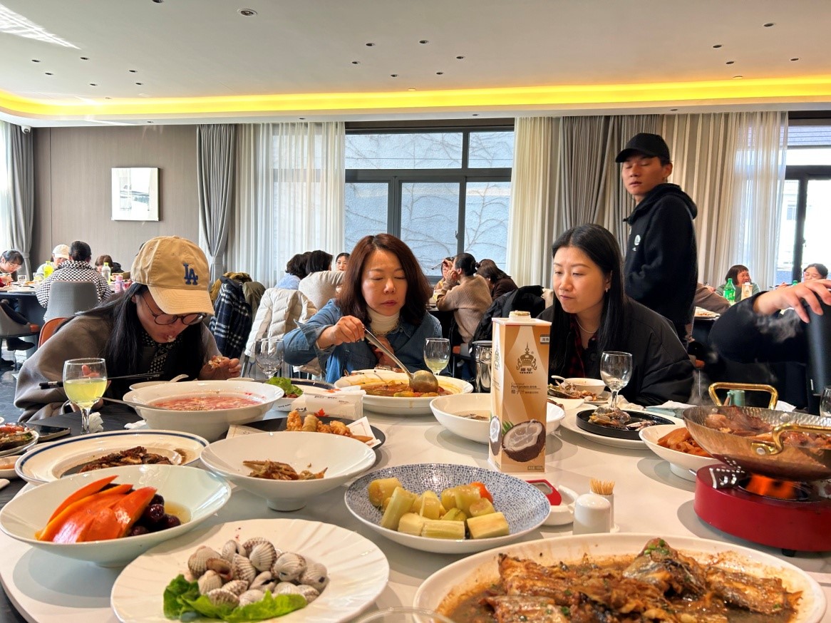 上午10點(diǎn)30分,公司全體女員工準時(shí)在公司樓下的大巴處集合,一起前往奉化品味午宴。