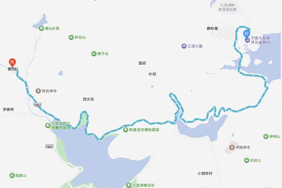 本次徒步活動(dòng)全程路線(xiàn)約7.3公里,起始地點(diǎn)為“九龍湖開(kāi)元度假村”,終點(diǎn)為“秦家游客服務(wù)中心”,步行時(shí)間約一個(gè)半到兩個(gè)小時(shí),沿線(xiàn)主要景點(diǎn)有郎家坪水庫、小洞岙水庫、九龍湖精靈谷等。